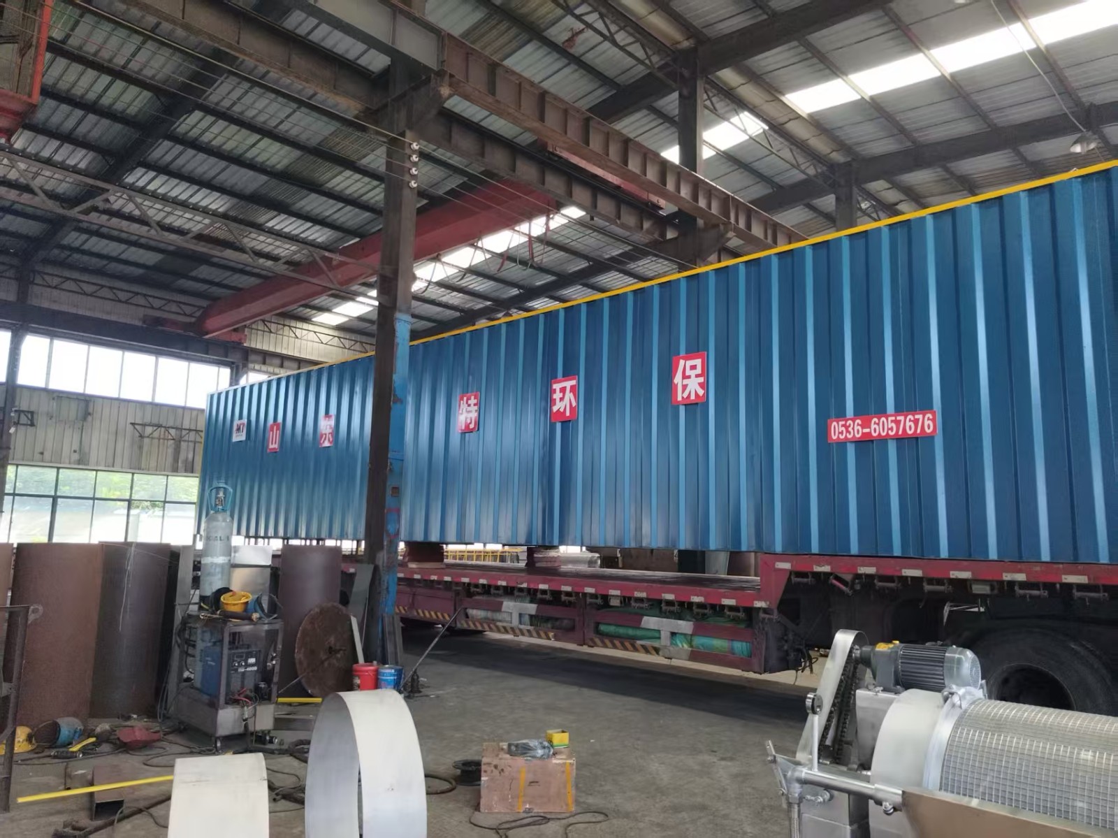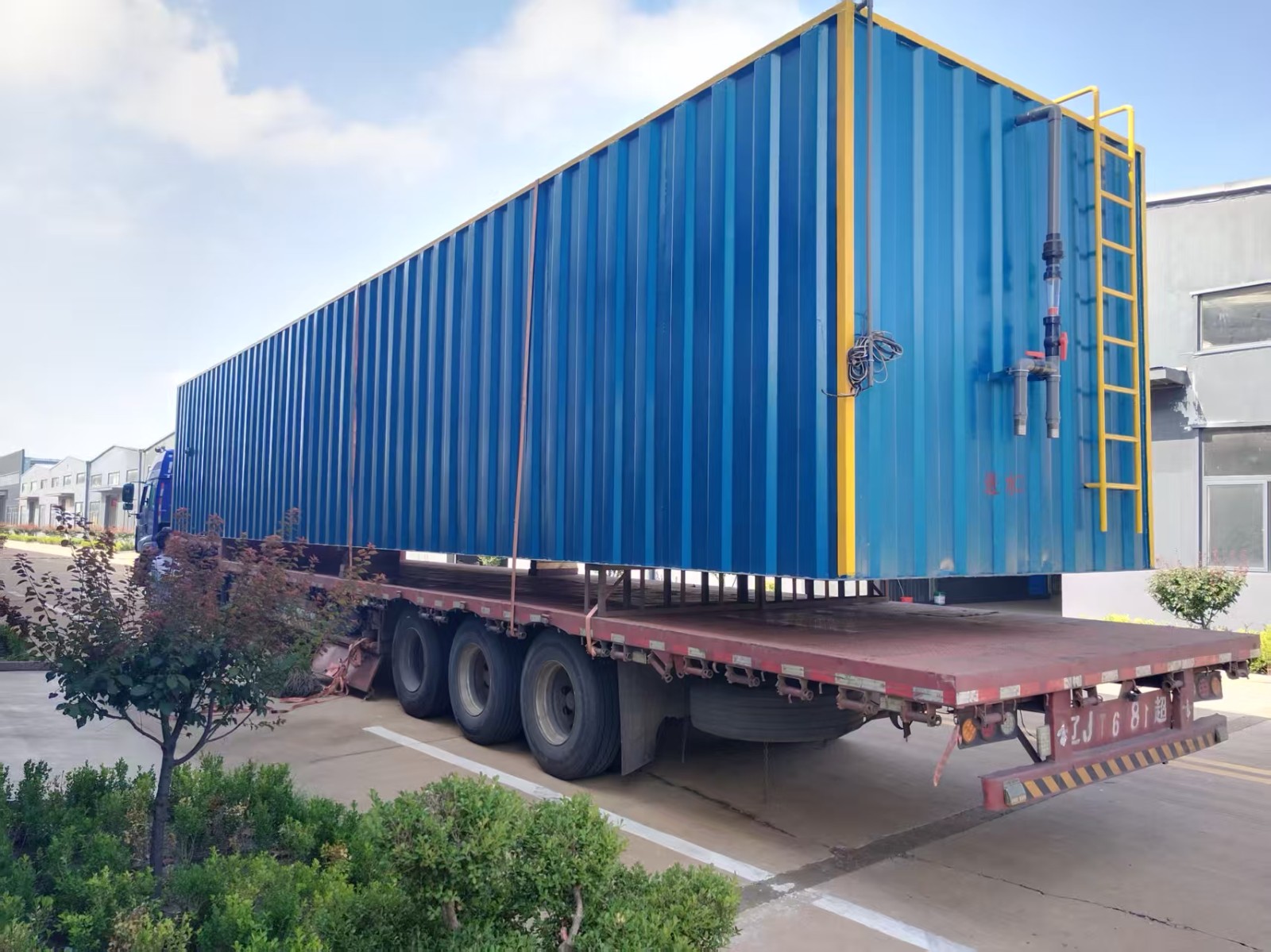 2025年9月1日全国开学日山东济宁客户定制的一体化污水处理设备装车发货,该设备采用Q235碳钢,该设备尺寸17X3X3M含设备操作间,含岩棉保温外加2MM瓦楞板。